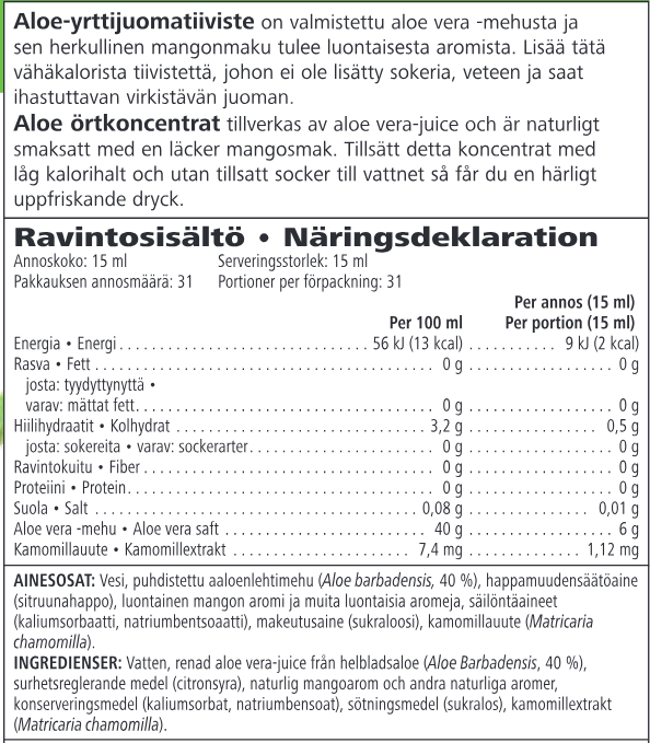 • Innehåller 40 % aloe vera-juice från aloe vera-bladet