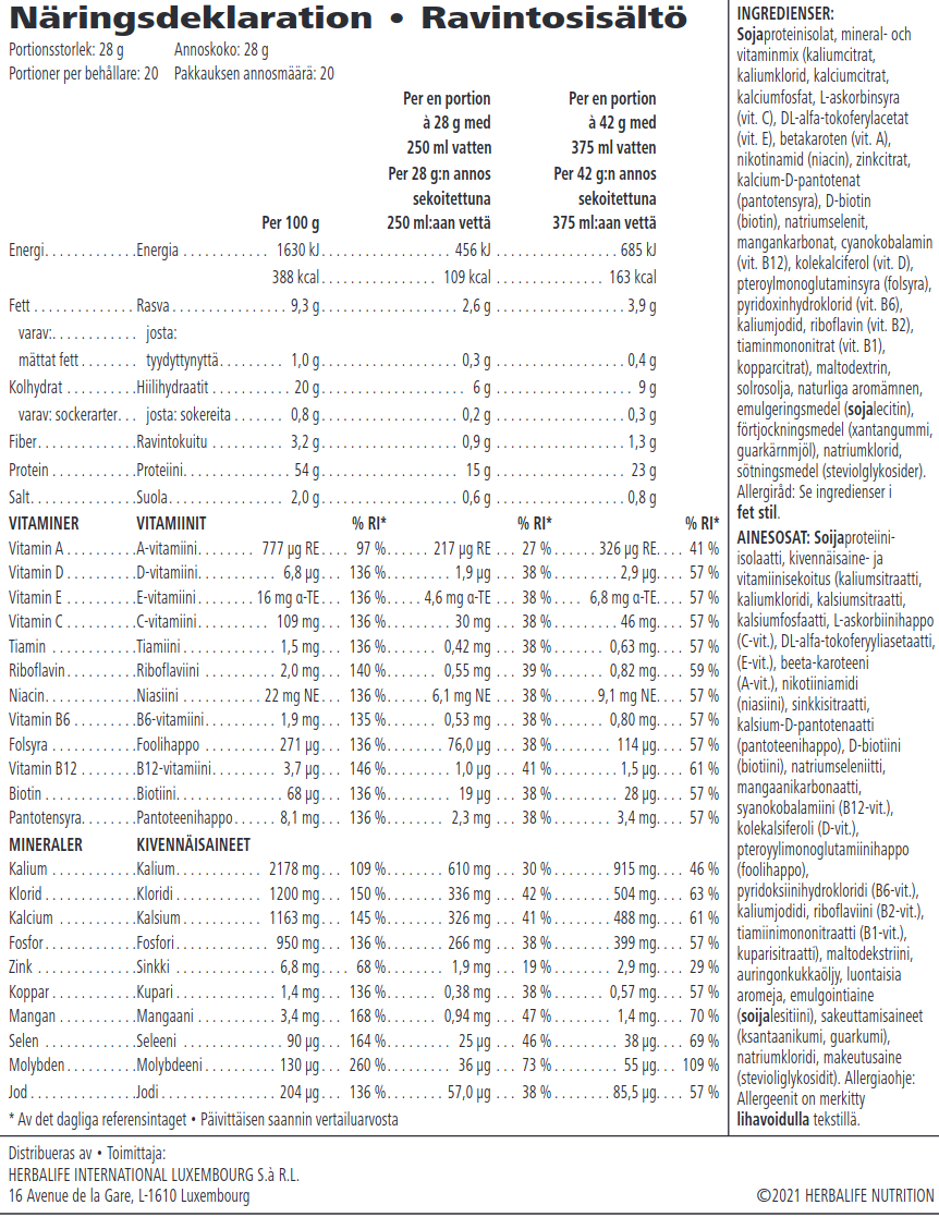 Drick denna produkt på förmiddagen eller eftermiddagen, låt produkten ingå i en balanserad och varierad kost som en del av en hälsosam och aktiv livsstil.