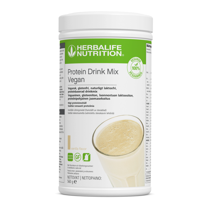hög proteinhalt och låg sockerhalt. Varje portion innehåller 22 vitaminer och mineraler, inklusive vitamin D som bidrar till immunsystemets normala funktion och vitamin C som bidrar till att minska trötthet och utmattning. Protein Drink Mix-Vegan innehåller inte heller några konstgjorda färgämnen eller smakämnen och är sötad med steviolglykosider framställda av växten stevia.
